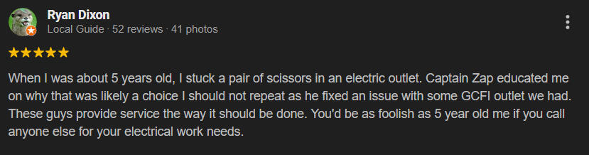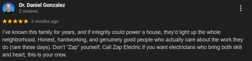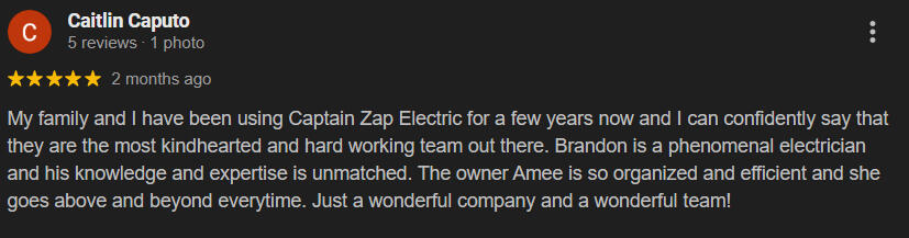 Captain Zap Electric has proudly served the Greater Austin area since 1996. Built as a family business, the company is now second-generation owned and led, continuing the legacy started by Amee’s father—the original Captain Zap.From the very beginning, Brandon was trained by the original Captain Zap, learning the trade hands-on from apprentice to journeyman and ultimately earning his Master Electrician license.Today, Amee leads the business while Brandon oversees the technical work, carrying forward decades of experience, integrity, and craftsmanship. As a small, local company, we take pride in honest service, quality work, and strong ties to our community.